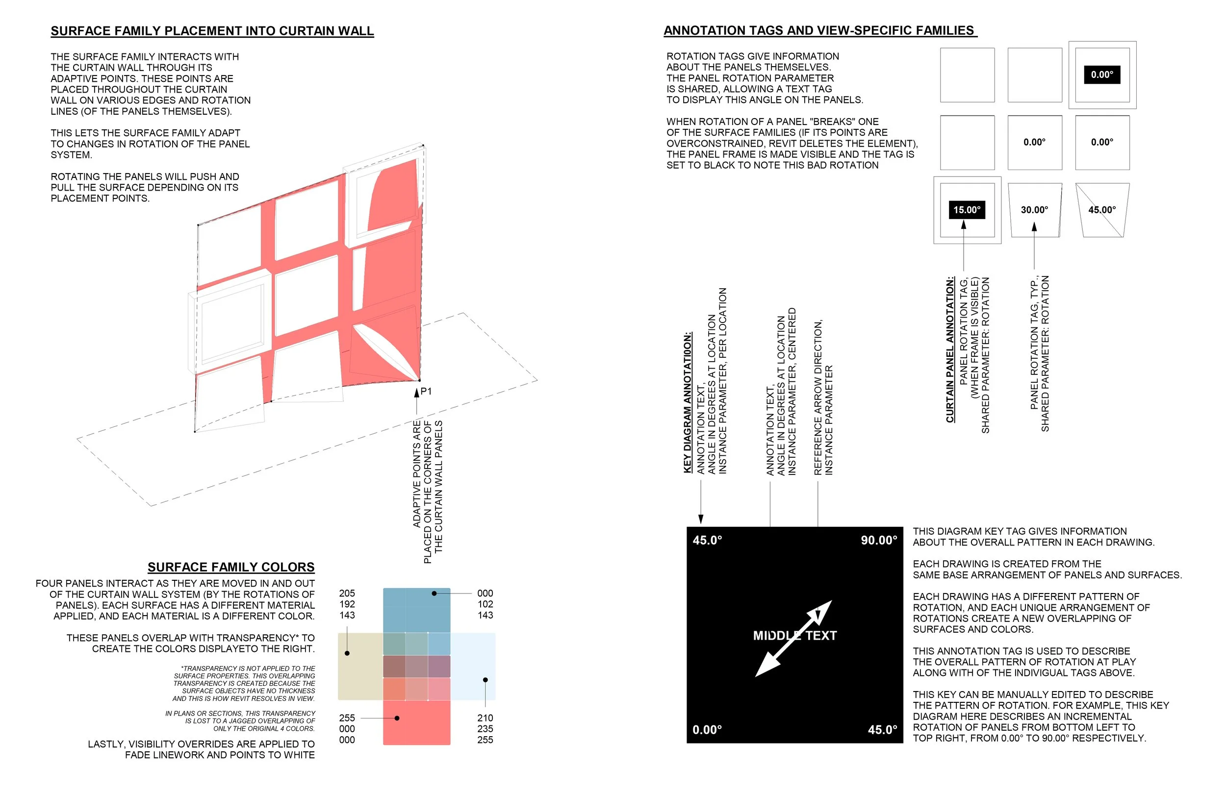 The focus of this course is to develop a fundamental understanding of the proliferate BIM software REVIT and its parametric counterpart DYNAMO through a series of uncanny and unfamiliar exercises. Throughout the semester, the progressive exercises will ask students to test, misuse and hopefully break the software’s limits and boundaries in regards to specific attributes and techniques of REVIT such as loadable families, adaptive components, annotations and schedules. Aided with reading assignments that lay the foundation for digital thinking within architecture, students will evaluate and critique the functions, logics, and design environments of BIM with each exercises.